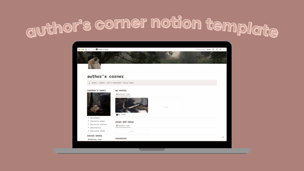 author's corner - notion template (dark academia)