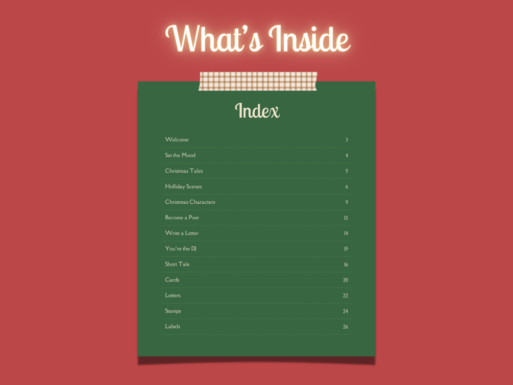The main goal of this workbook is to help you work on your imagination and add anĀ extra layer of joyĀ to your holiday festivities. Grab your favorite hot drink, cozy up in your favorite spot, and start imagining!